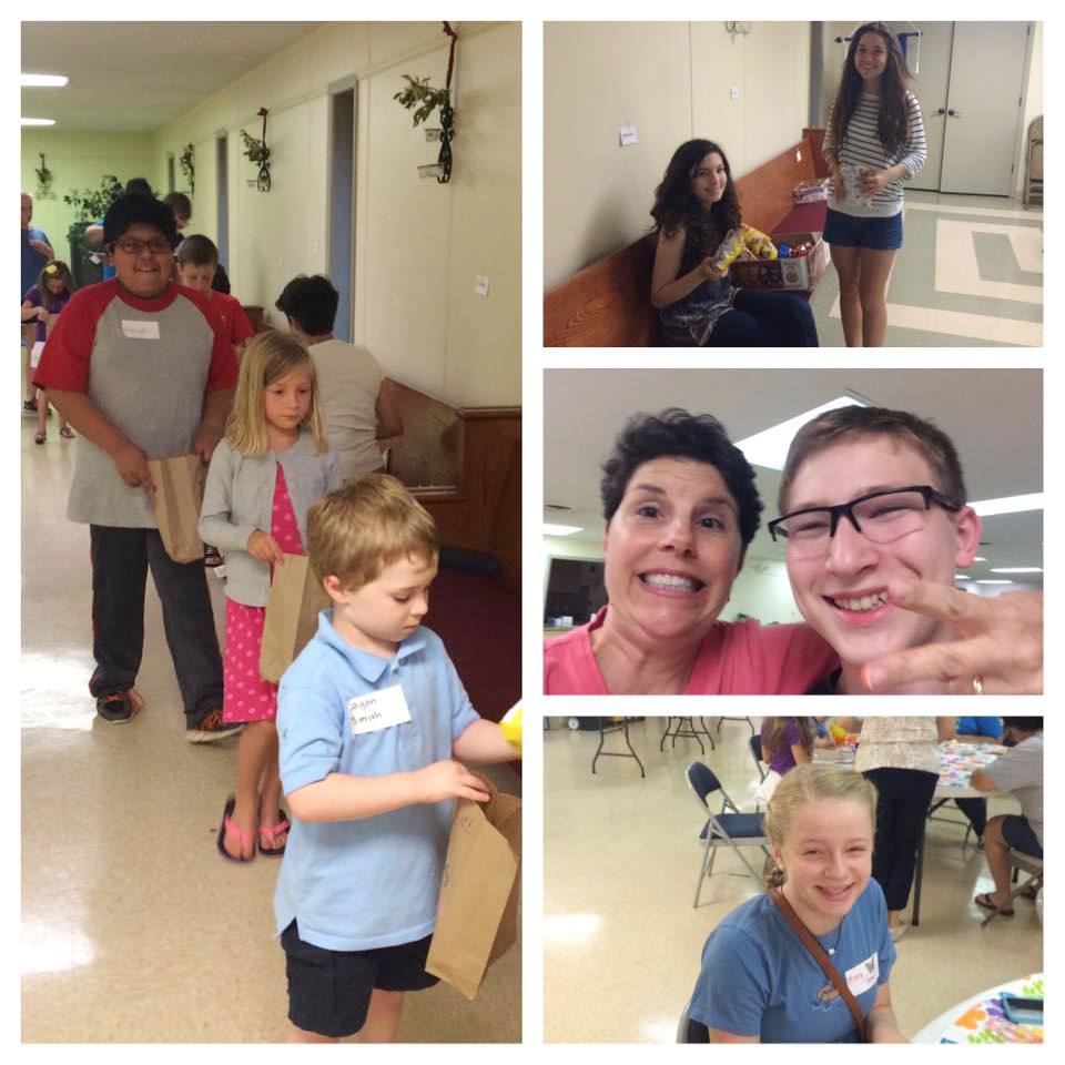 Wild & Wacky Wednesdays began in June, and while these evenings are usually filled with outdoor games and a lot of running around, our “first fruits” were used for an outreach project – preparing lunches for the Rainbow Village kids. In the preceding weeks parishioners had donated salty and sweet snacks, bread, fruit cups – you get the idea. So, on this first Wednesday night, the kids and youth would be decorating 150 lunch bags, writing 150 notes for the RV kids, and then filling these bags with all the lunch goodies.