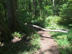 Across the bridge and on to a bit more rugged terrain. And then appeared this message of hope “Please stay on the marked trail to allow forest to grow.”