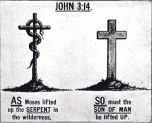 The author of John’s gospel is explaining the crucifixion to be like that serpent on the pole that Moses lifted up to be the salvific act when those who were snake-bit looked at it. Now we are told that just as Moses was lifted up, lifted up the serpent in the wilderness, so must the Son of Man be lifted up, that whoever believes in him may have eternal life.