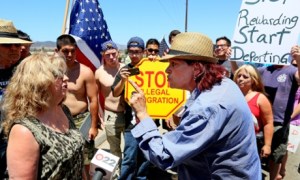 Immigration protesters on both sides of the debate staged rallies at a California Border Patrol station last week, in response to the child migrant crisis. Photo: Sandy Huffaker /Getty