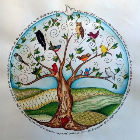 He also said, “With what can we compare the kingdom of God, or what parable will we use for it? It is like a mustard seed, which, when sown upon the ground, is the smallest of all the seeds on earth; yet when it is sown it grows up and becomes the greatest of all shrubs, and puts forth large branches, so that the birds of the air can make nests in its shade.”