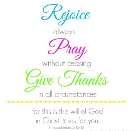Rejoice always, pray without ceasing, give thanks in all circumstances; for this is the will of God in Christ Jesus for you. Do not quench the Spirit. Do not despise the words of prophets, but test everything; hold fast to what is good; abstain from every form of evil.